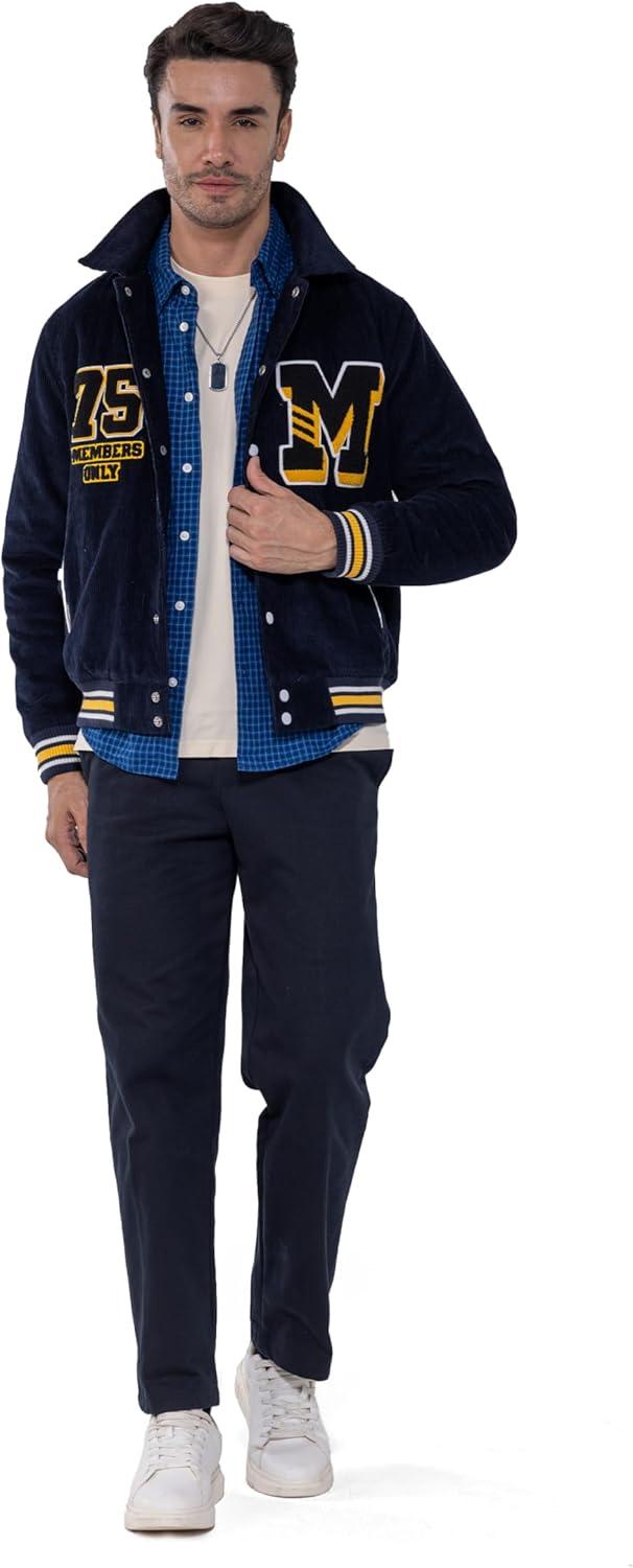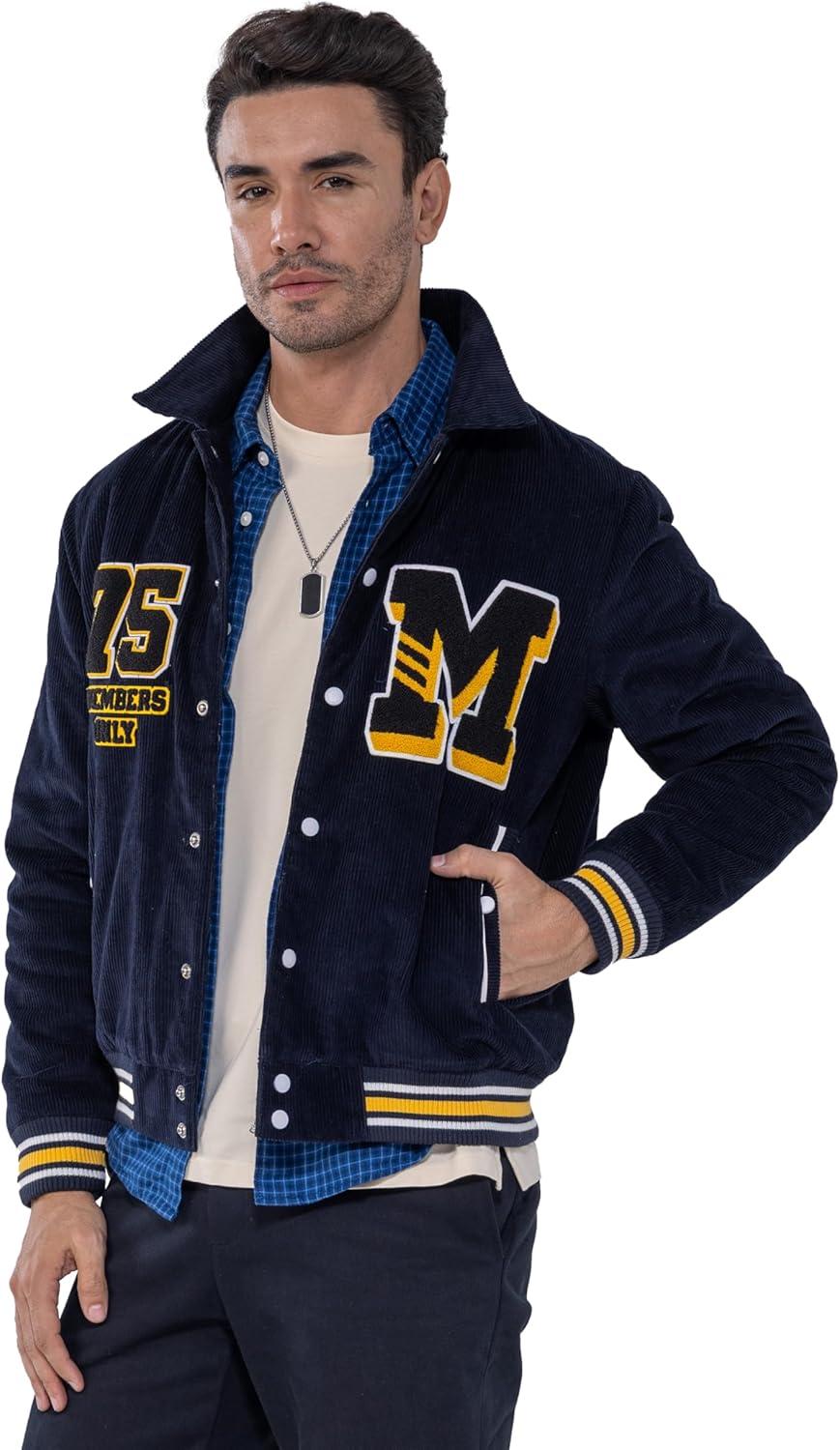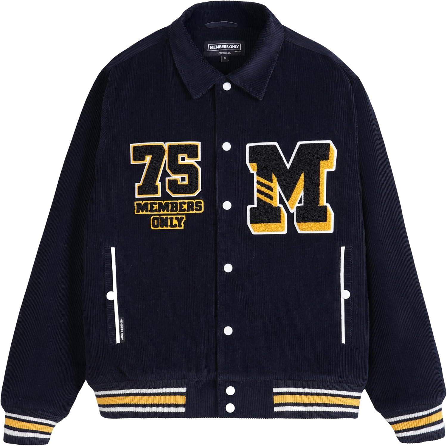 Members Only Corduroy Varsity Jacket for Men | Letterman Jacket Men | Mens Varsity Jacket Leather | Mens Corduroy Jacket(Navy)