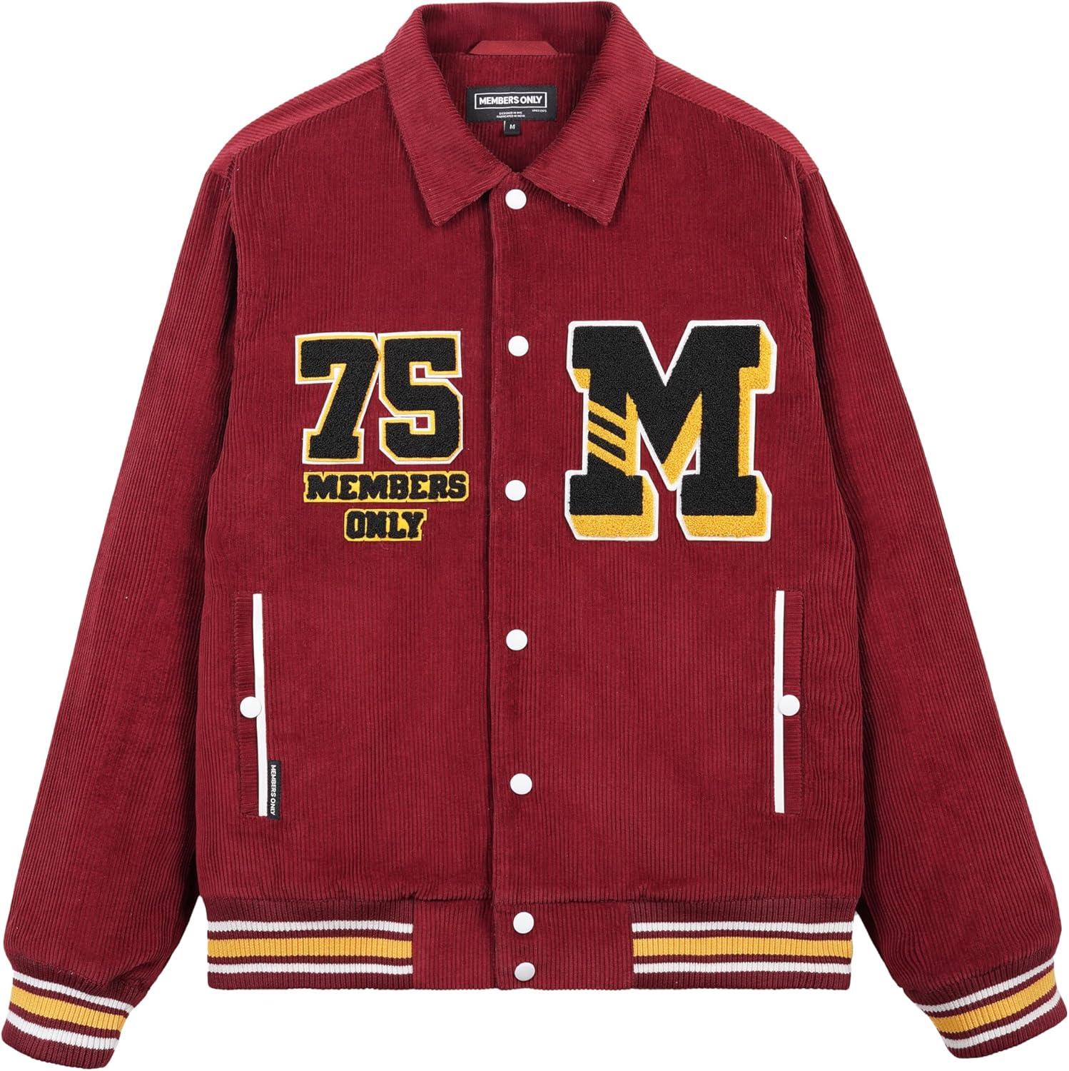 imageMembers Only Corduroy Varsity Jacket for Men  Letterman Jacket Men  Mens Varsity Jacket Leather  Mens Corduroy JacketRed