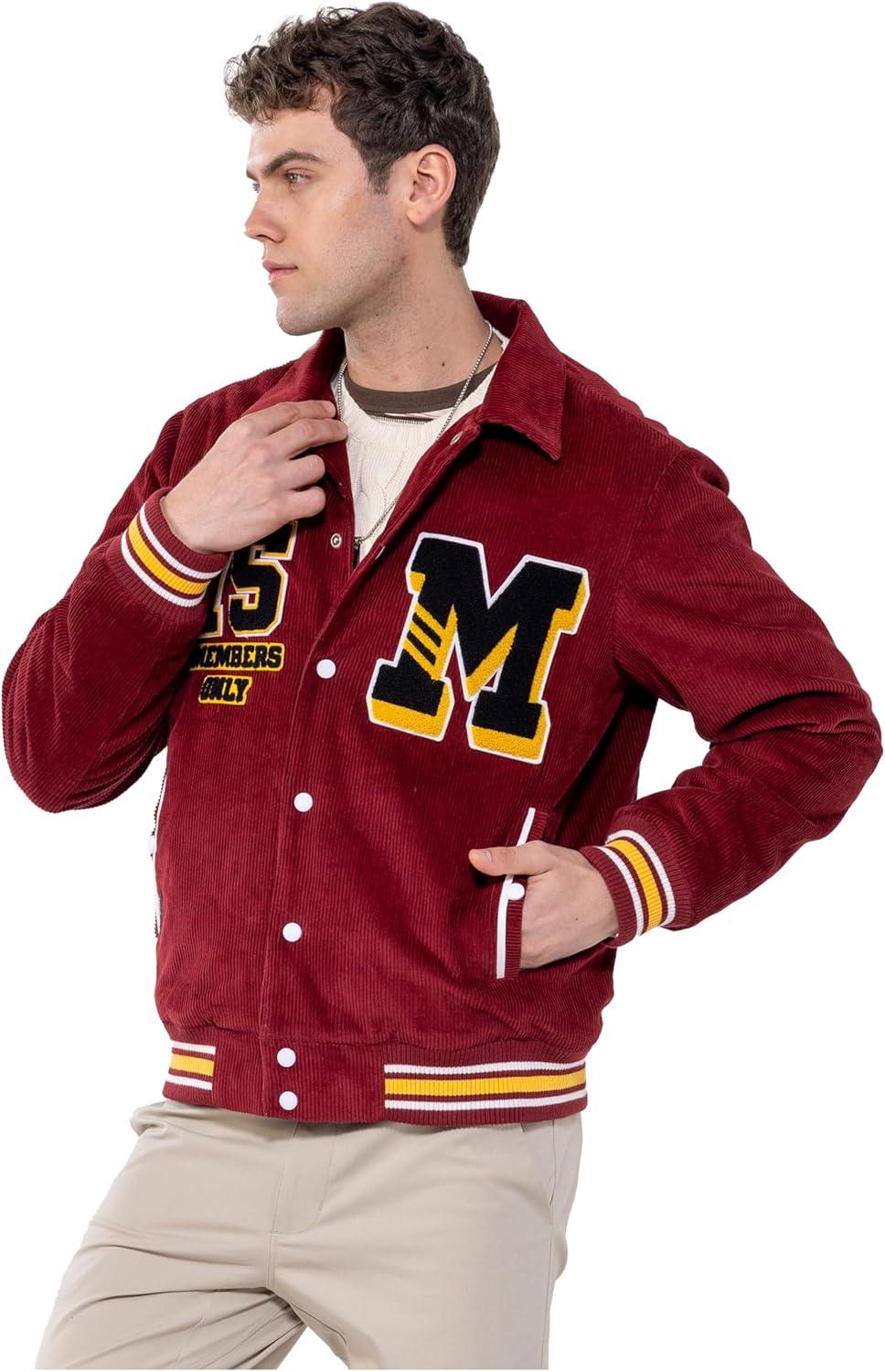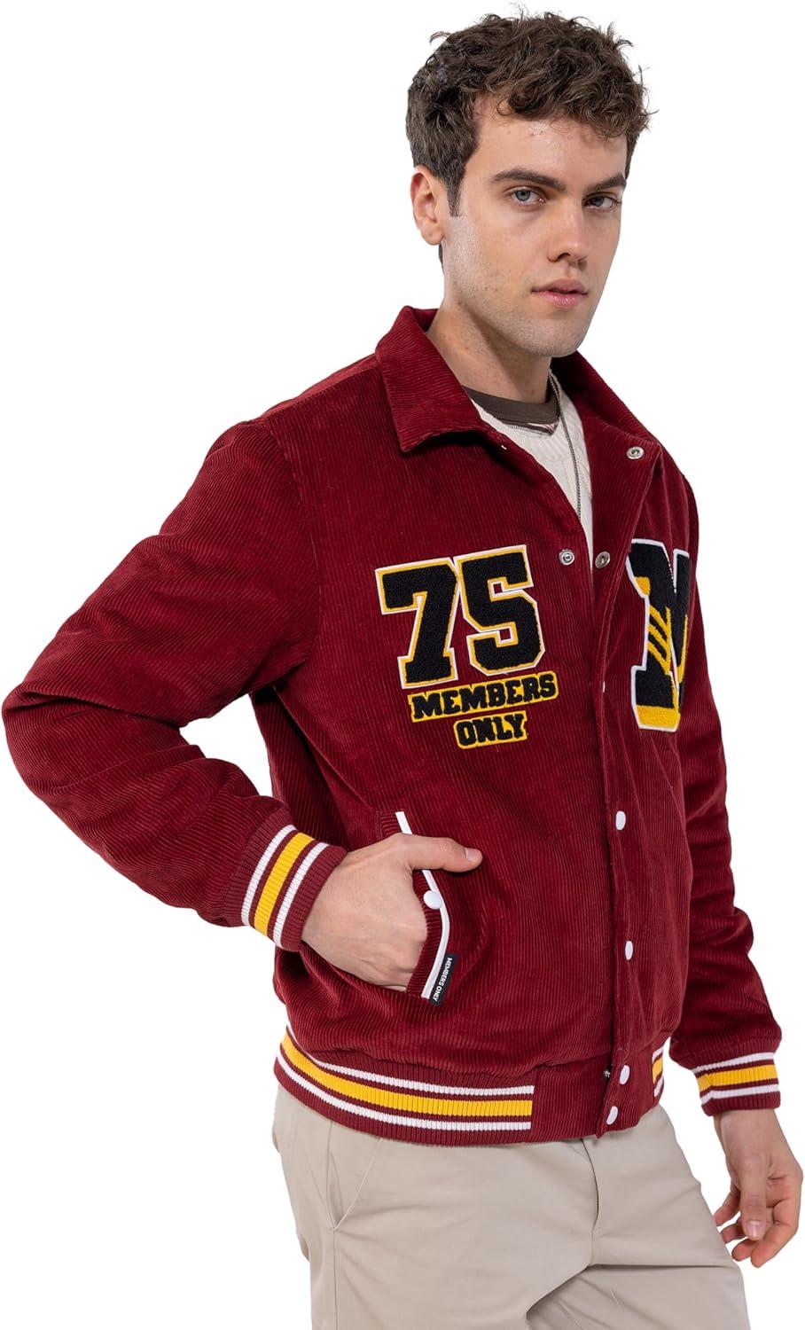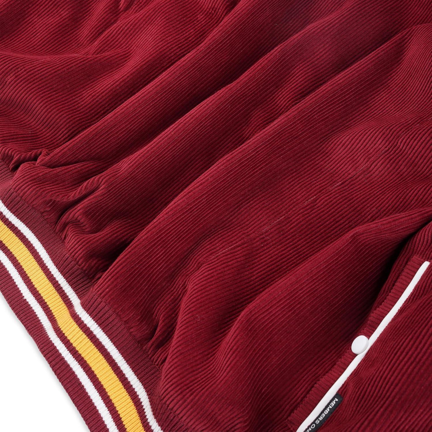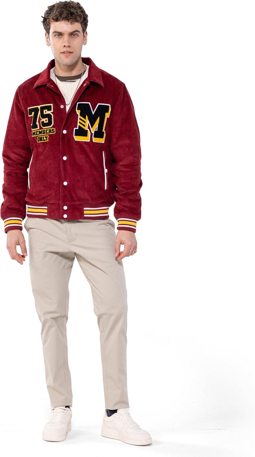 Members Only Corduroy Varsity Jacket for Men | Letterman Jacket Men | Mens Varsity Jacket Leather | Mens Corduroy Jacket(Red)