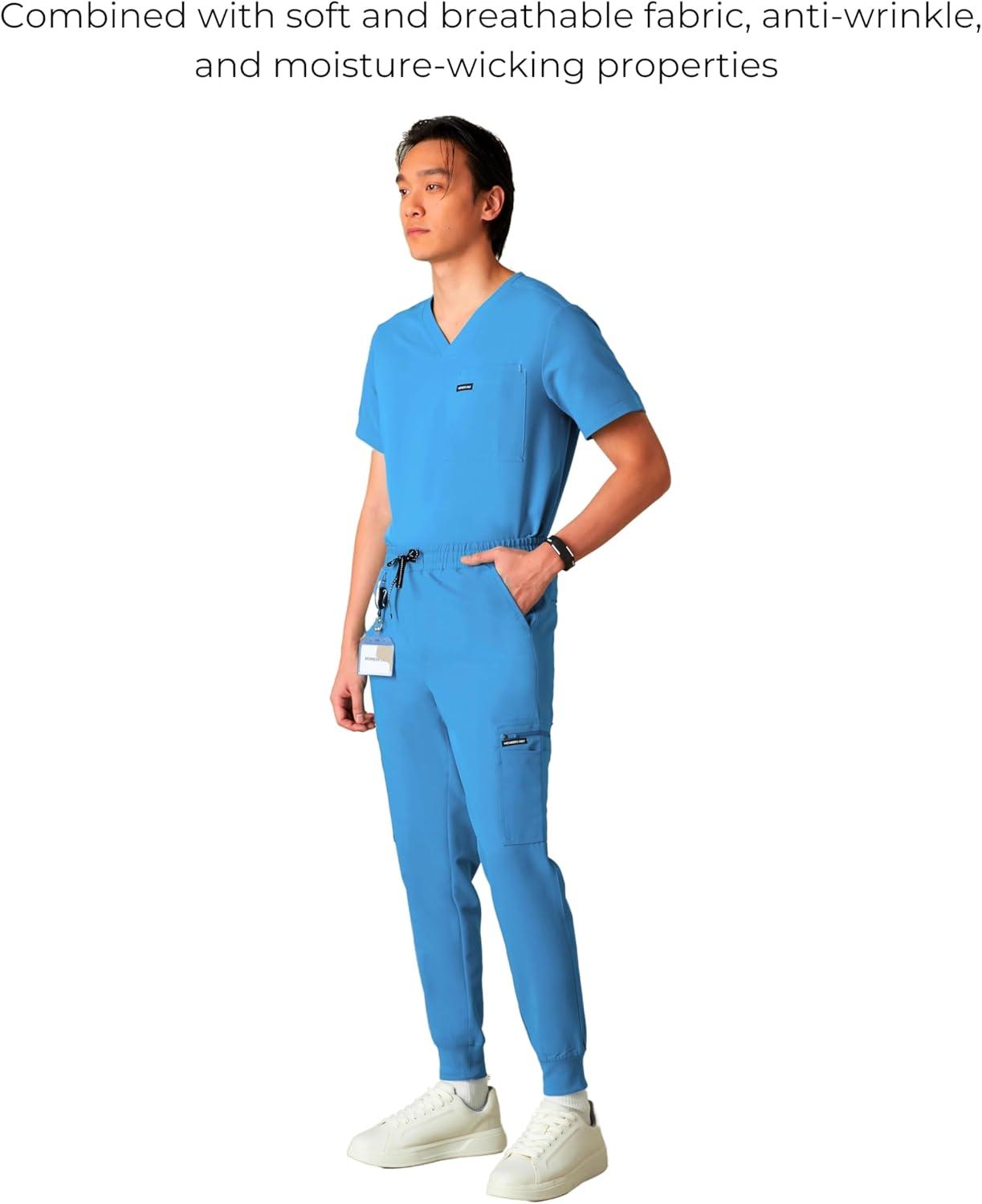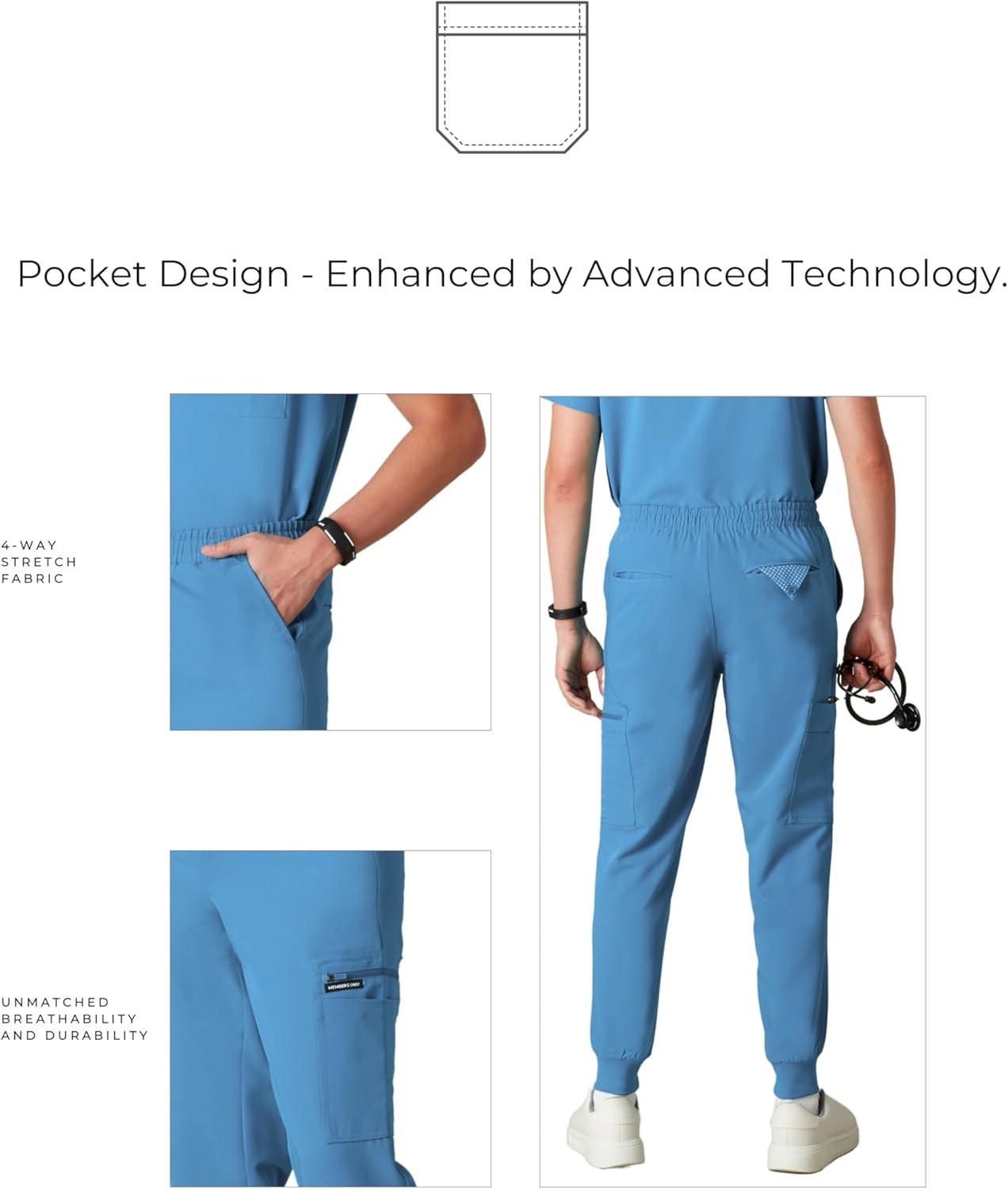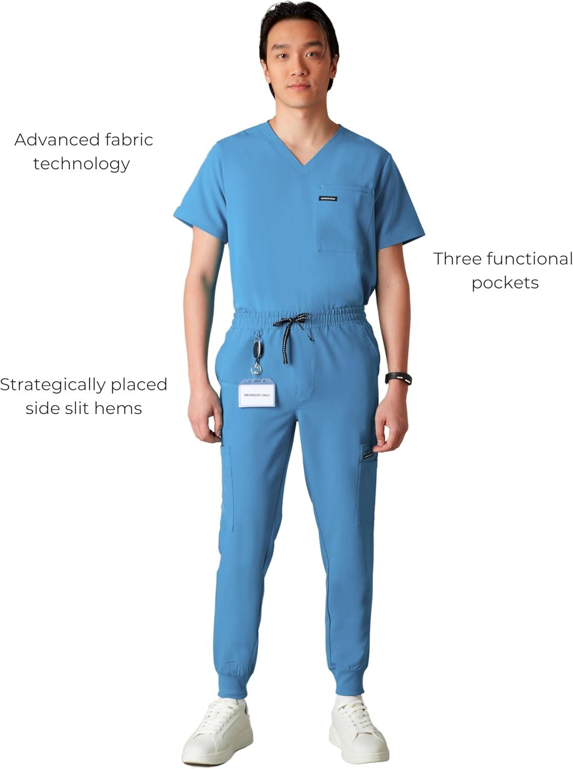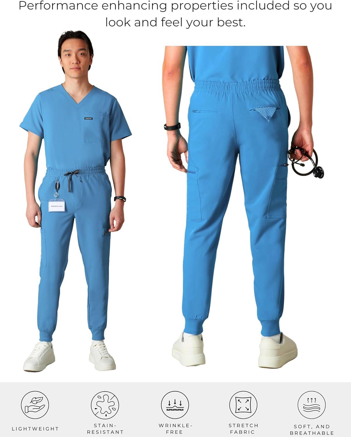 Members Only London Drawstring Men's Jogger Pants, Medical Scrubs, Hospital Scrub Pants(Ceil Blue)