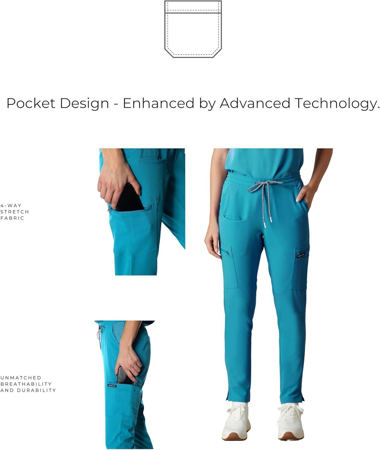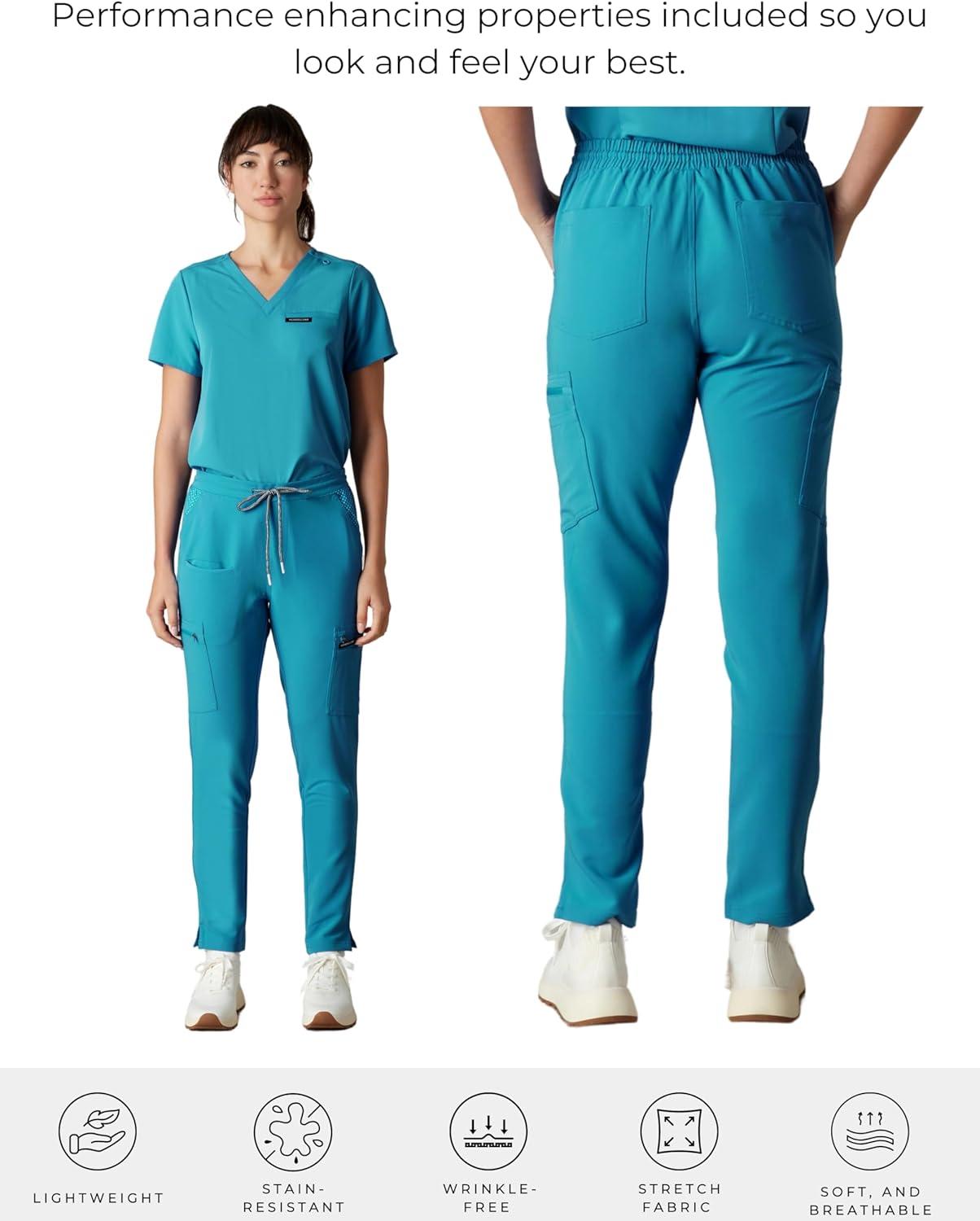 Members Only Reus Wide Leg Scrub Pants for Women’s | Scrub Joggers Women | Scrubs Pants Women(Teal)