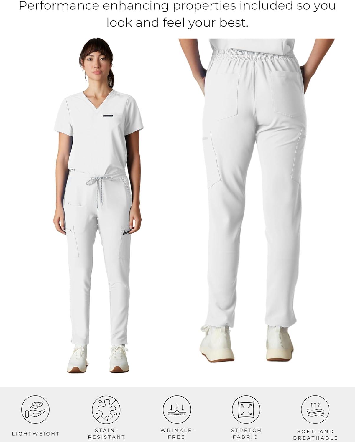 Members Only Reus Wide Leg Scrub Pants for Women’s | Scrub Joggers Women | Scrubs Pants Women(White)